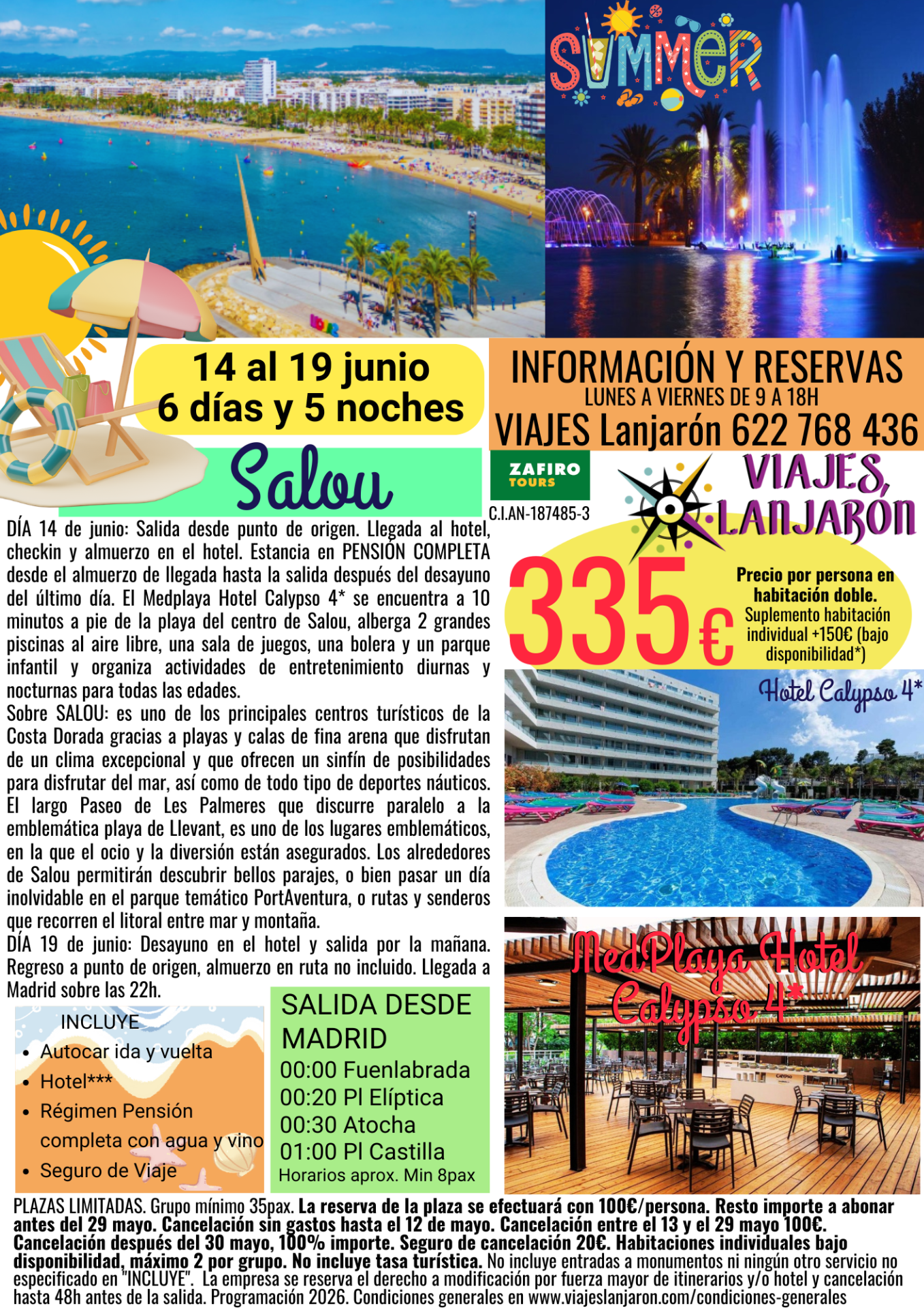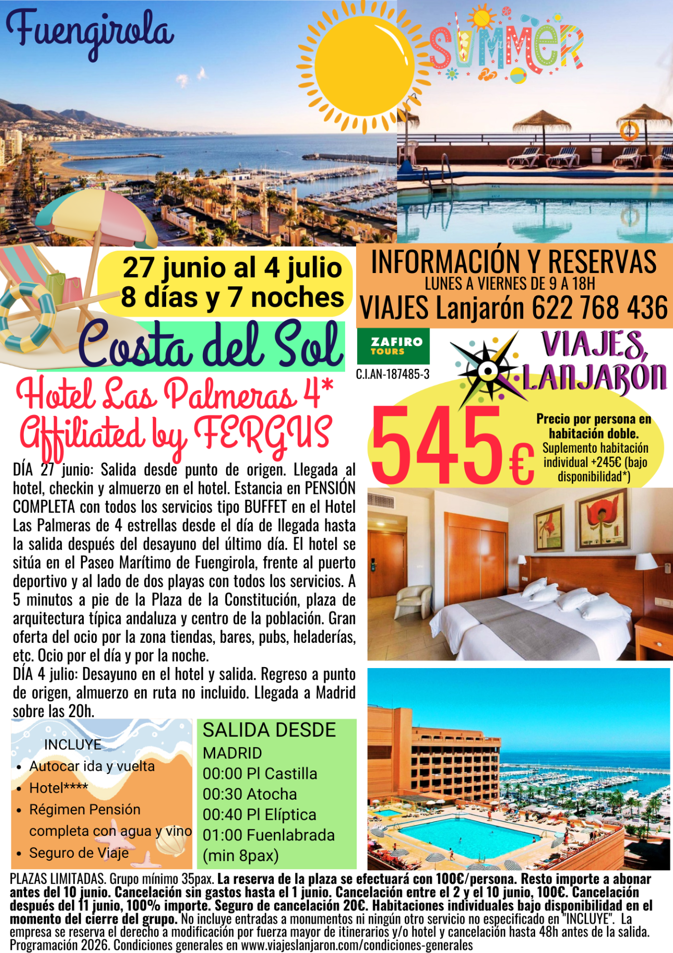 Disponibilidad en página web sujeta a confirmación con oficina en el 622 768 436