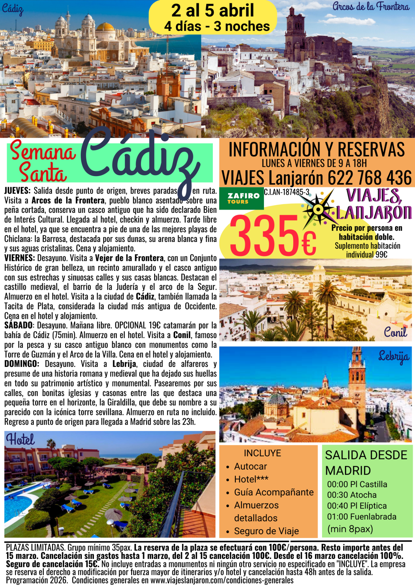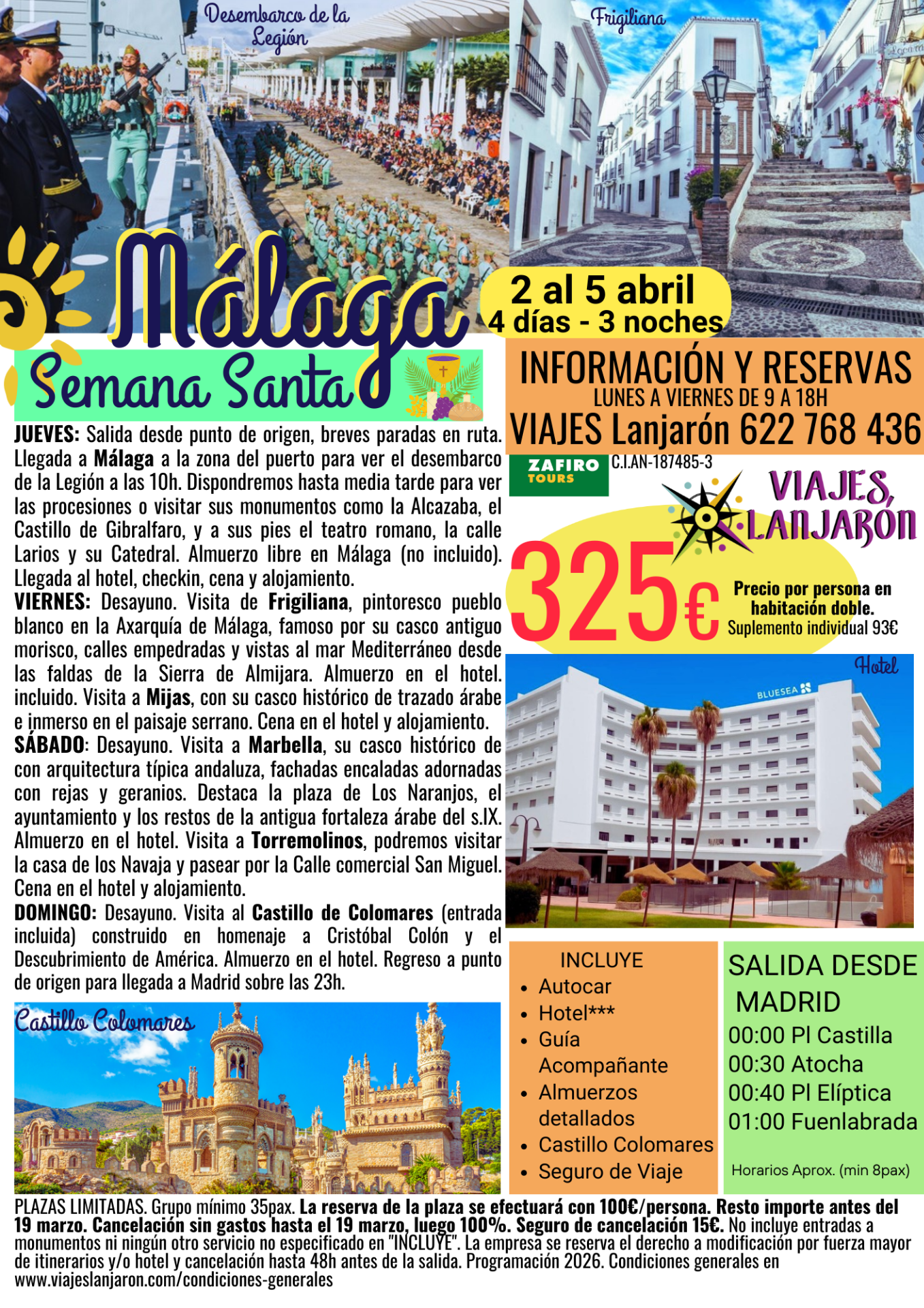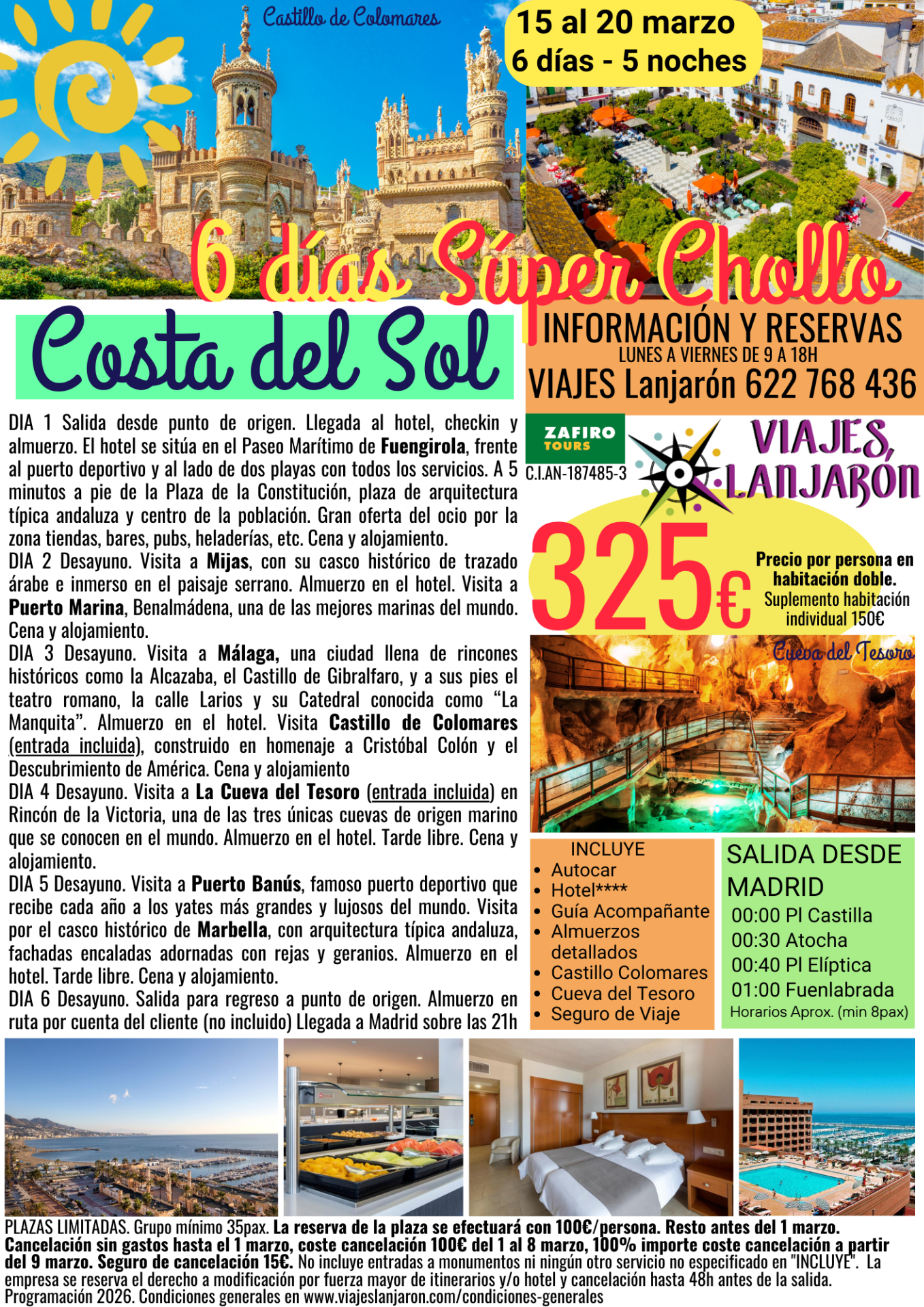Disponibilidad en página web sujeta a confirmación con oficina en el 622 768 436