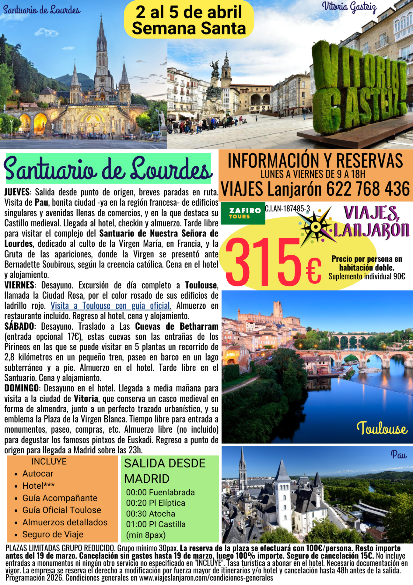 SANTUARIO DE LOURDES, PAU Y VITORIA - HAY PLAZAS